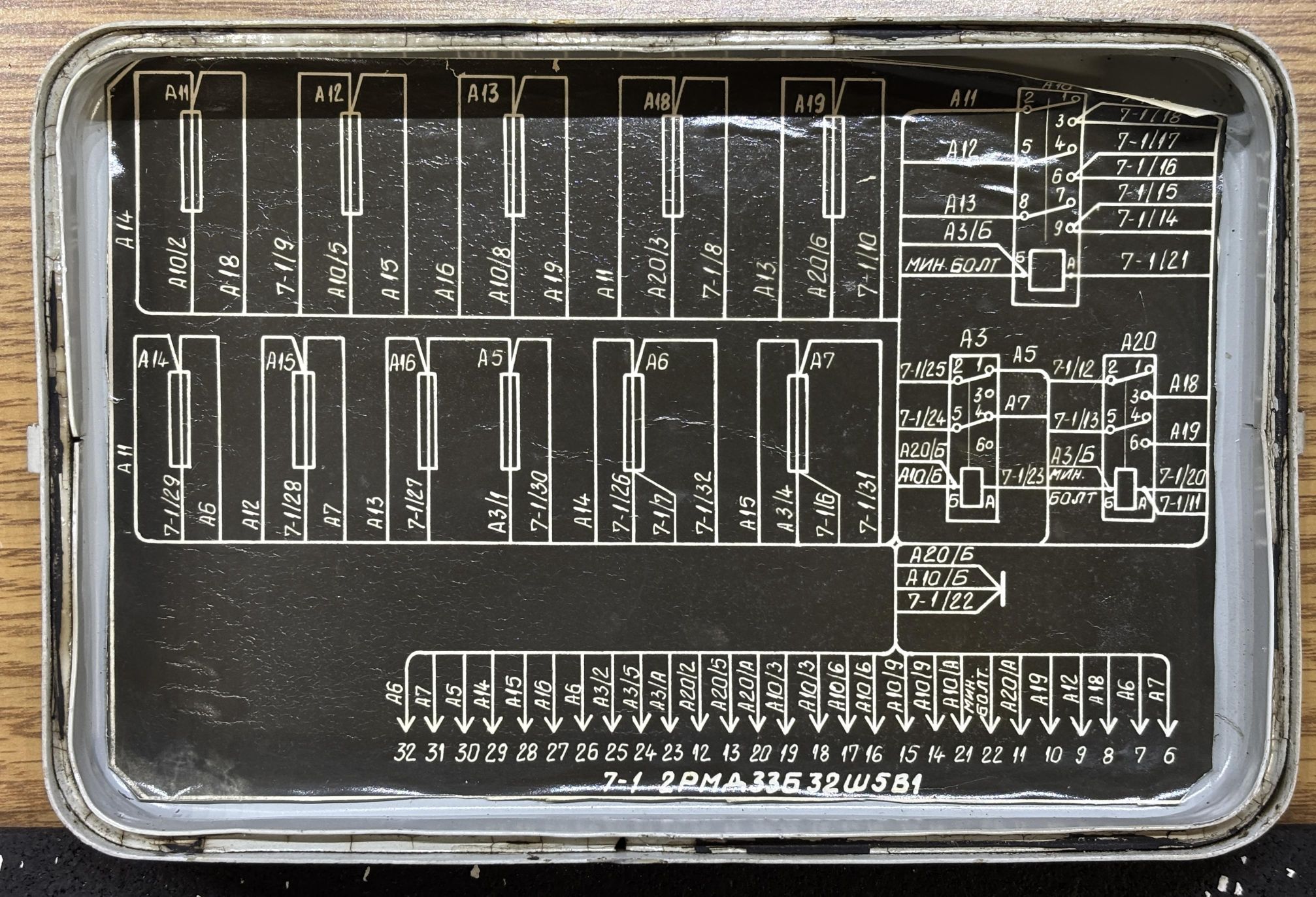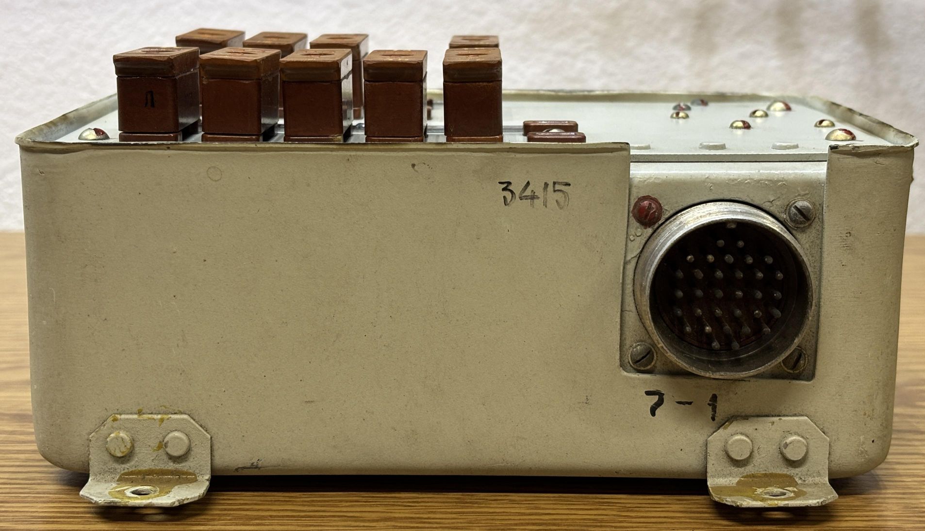This is the fuse box from the Yak-18T. It's an aluminum enclosure packed full of genuine soviet fuses, relays, and wiring on the inside. These fuses protect the avionics and electronic instruments from further damage if they malfunction or if there is a wiring problem. It's important to note that these fuses cannot be reset when they blow, and must be replaced. Modern aircraft generally use circuit breakers that can be reset if needed.