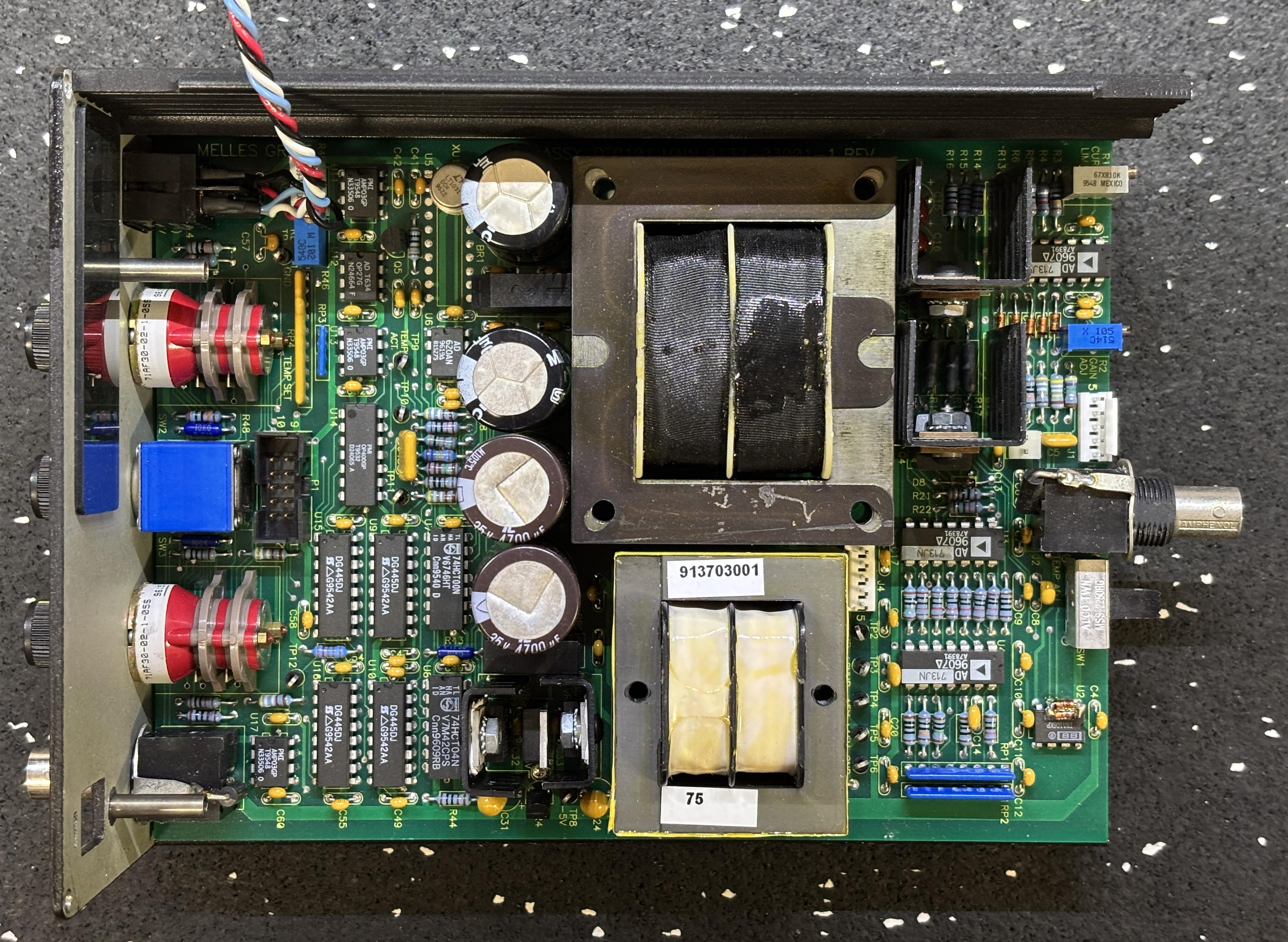 There are plenty of labeled test points on the board along with two internal potentiometers located towards the front. The potentiometers are labeled IC OFFSET and REF and are likely used for calibration, but we have no documentation to confirm this.