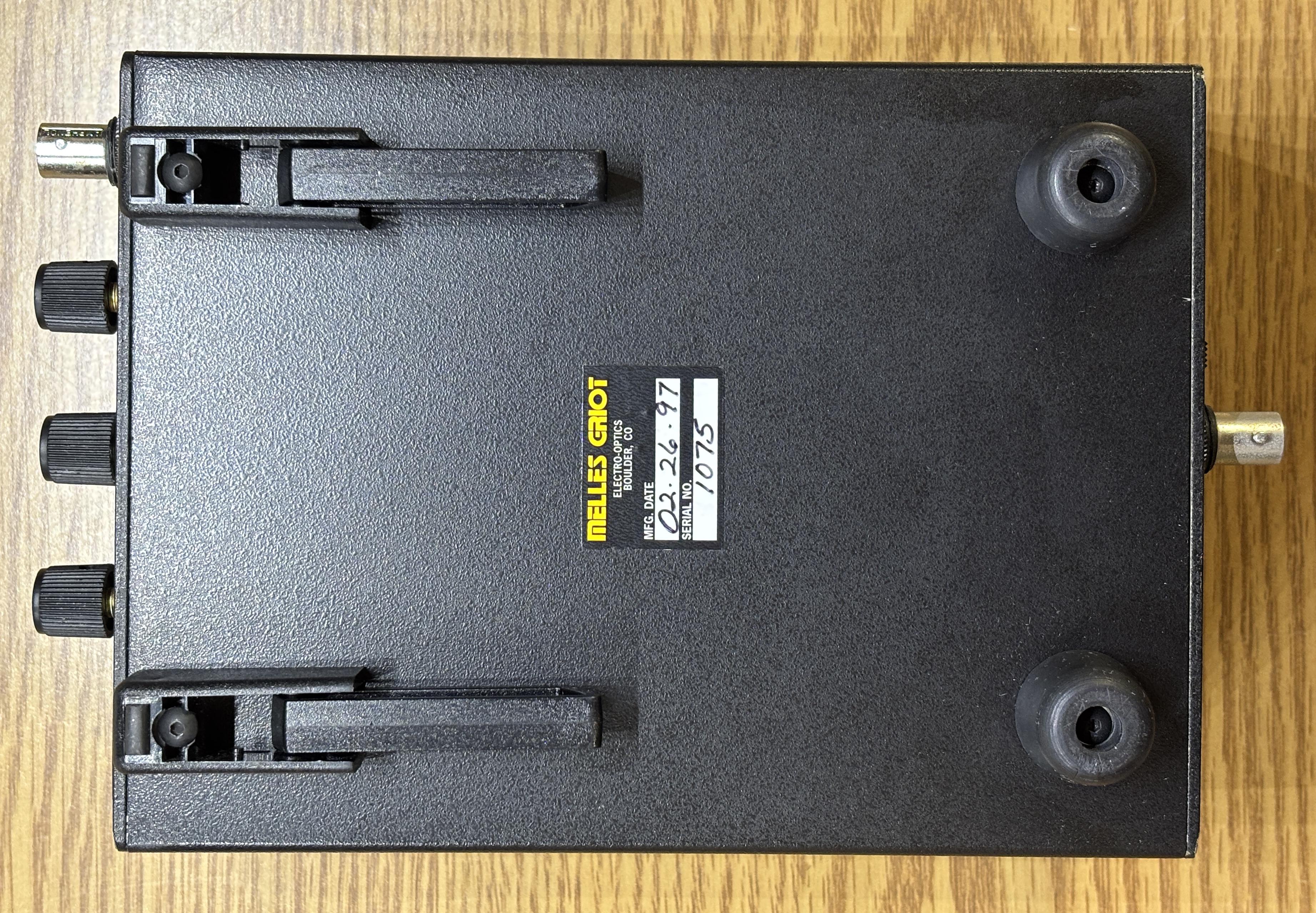 The 06-DTC-101 is an external TEC driver manufactured by Melles Griot. The device was intended to drive TECs of various specifications in lab settings. The system supports various types of thermistors which are used to monitor the temperature and control the TEC based on a user-configurable temperature setpoint. A digital readout enables the user to monitor parameters such as temperature, setpoint, TEC current and current limits. Example use cases include regulating TECs for laser systems or optics that require precise thermal management.