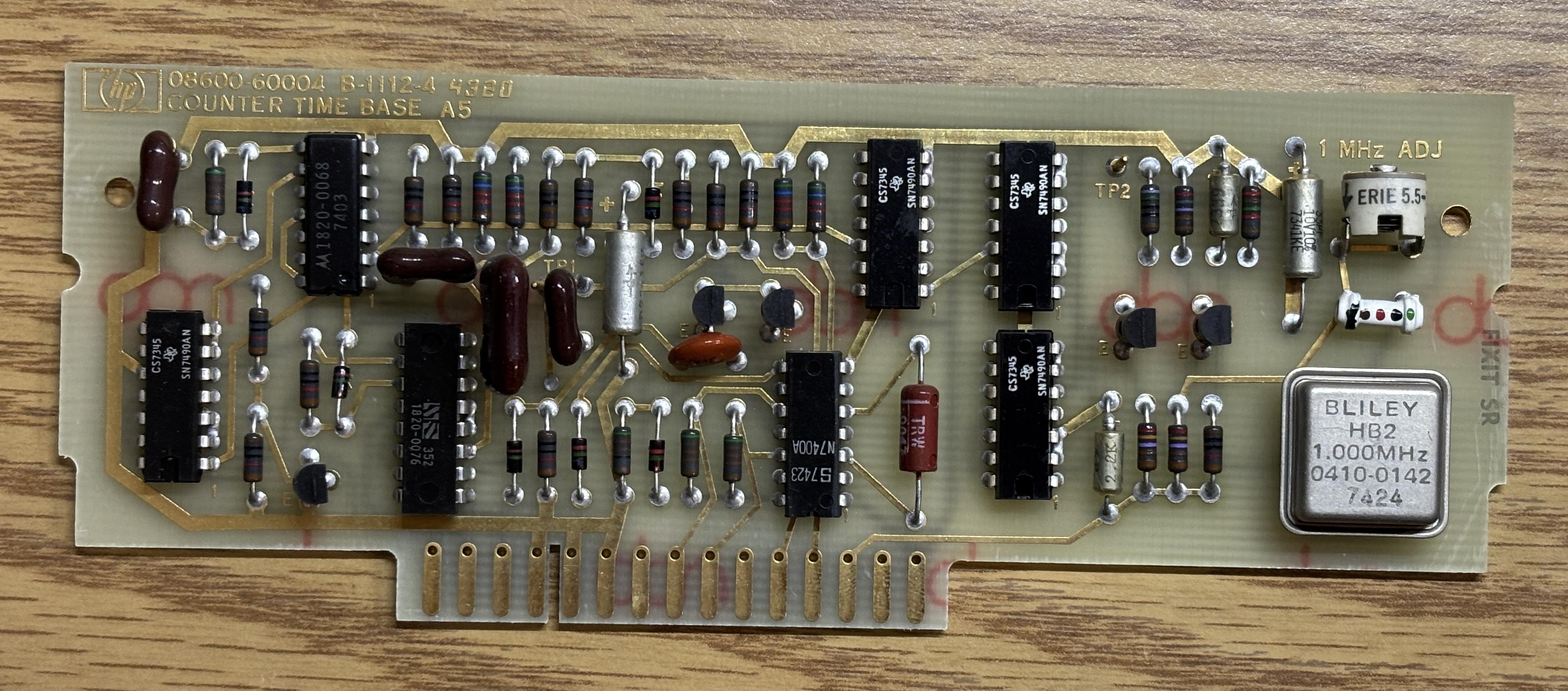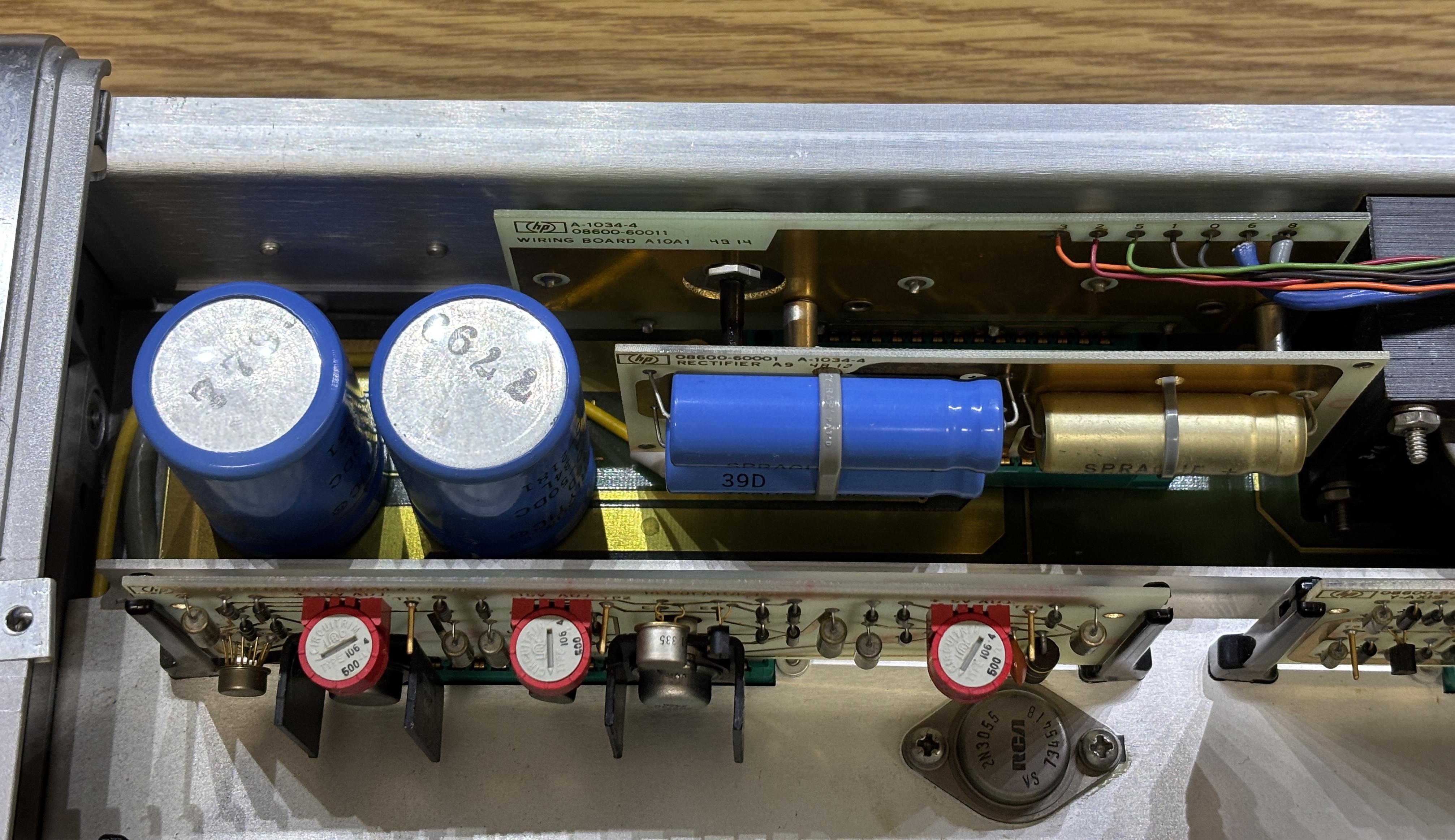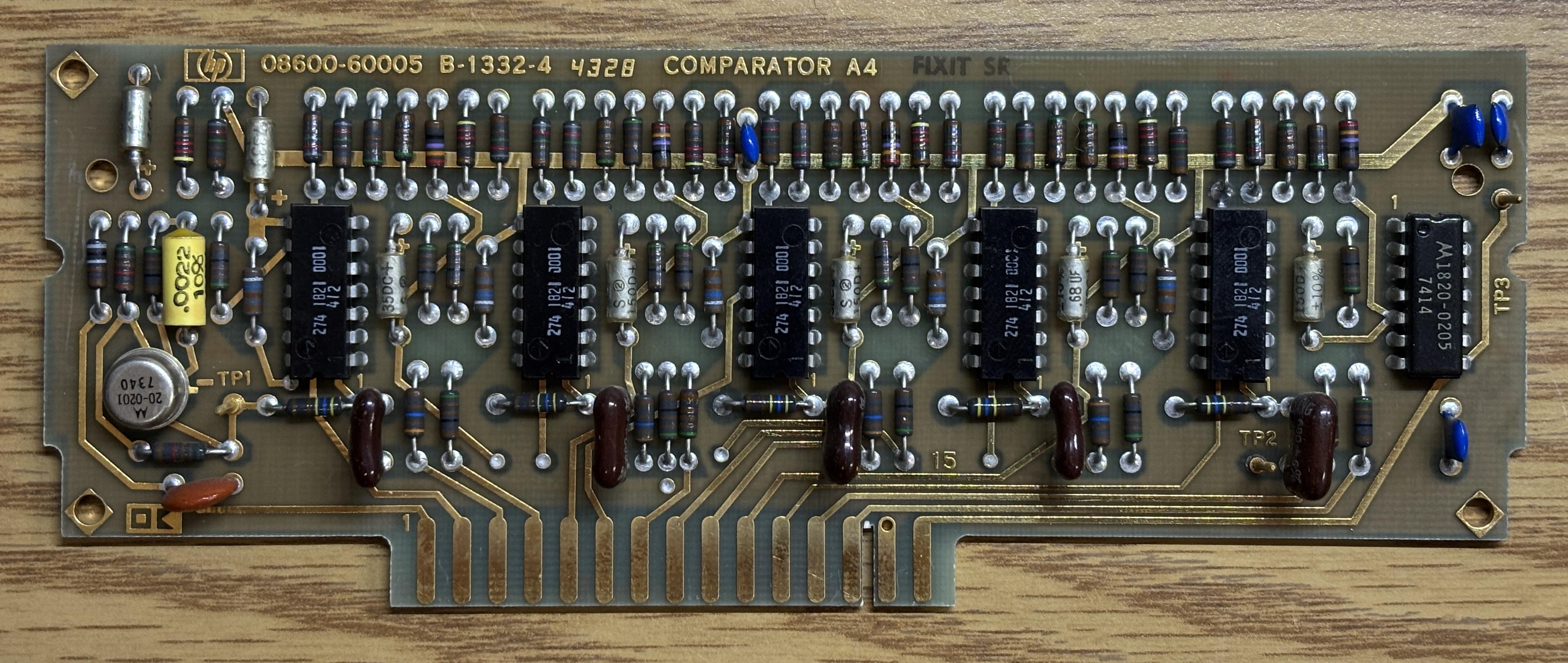 The 8600A digital marker is part of the spectrum and network analyzer family of HP products from the 1960s and 70s. It was designed to be used with the 8601A generator/sweeper and is normally connected to the AUX output of the sweeper. The digital marker provides a precise readout of the frequency currently being analyzed, without the need to estimate the frequency using the sweep dial or graticule. It also generates marker tones that can then be displayed as sharp peaks on the analyzer's display. The 8600A contains some primitive digital logic combined with analog RF circuitry that is spread out across several cards installed in a backplane. It uses an internal oscillator and a series of dividers and counters to generate the marker tones, which essentially form an accurate ruler on the analyzer's display. The rotary encoders are used to adjust the marker spacing. Nixie tubes are used to display the numbers that make up the frequency readout.