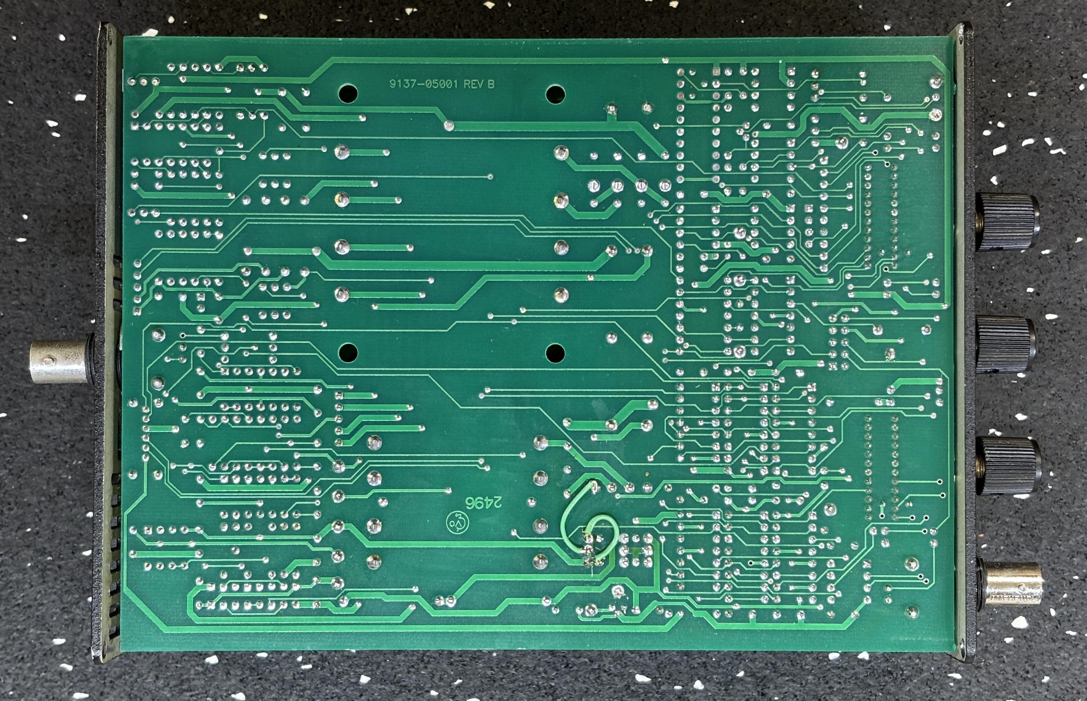 There are plenty of labeled test points on the board along with two internal potentiometers located towards the front. The potentiometers are labeled IC OFFSET and REF and are likely used for calibration, but we have no documentation to confirm this.
