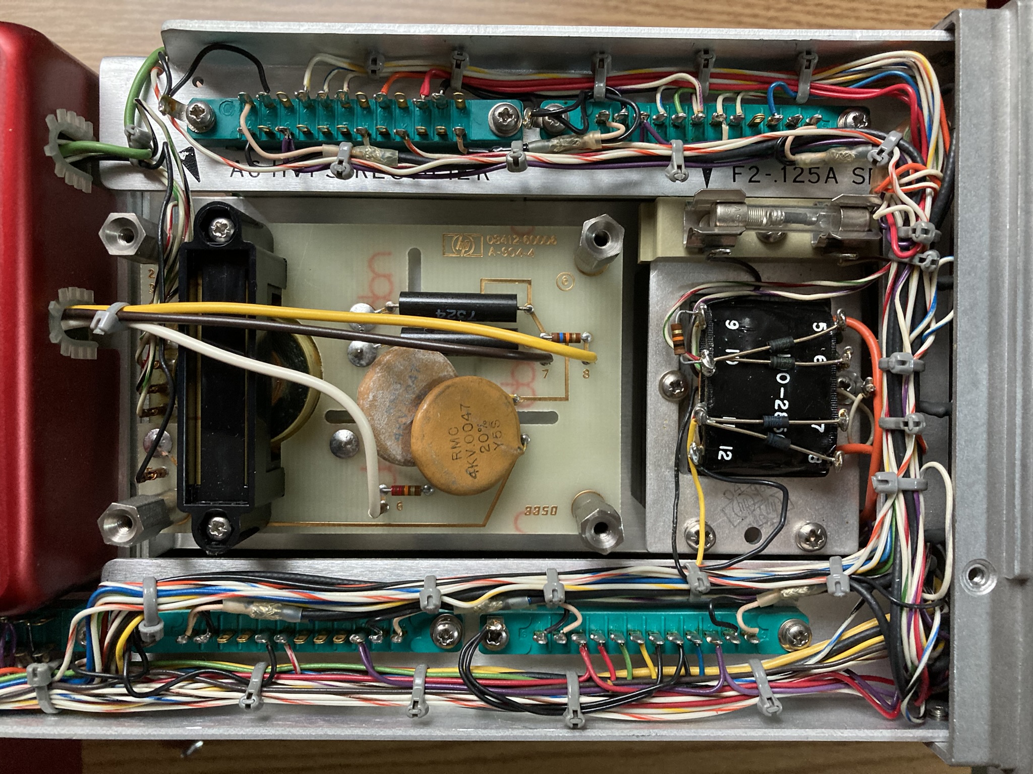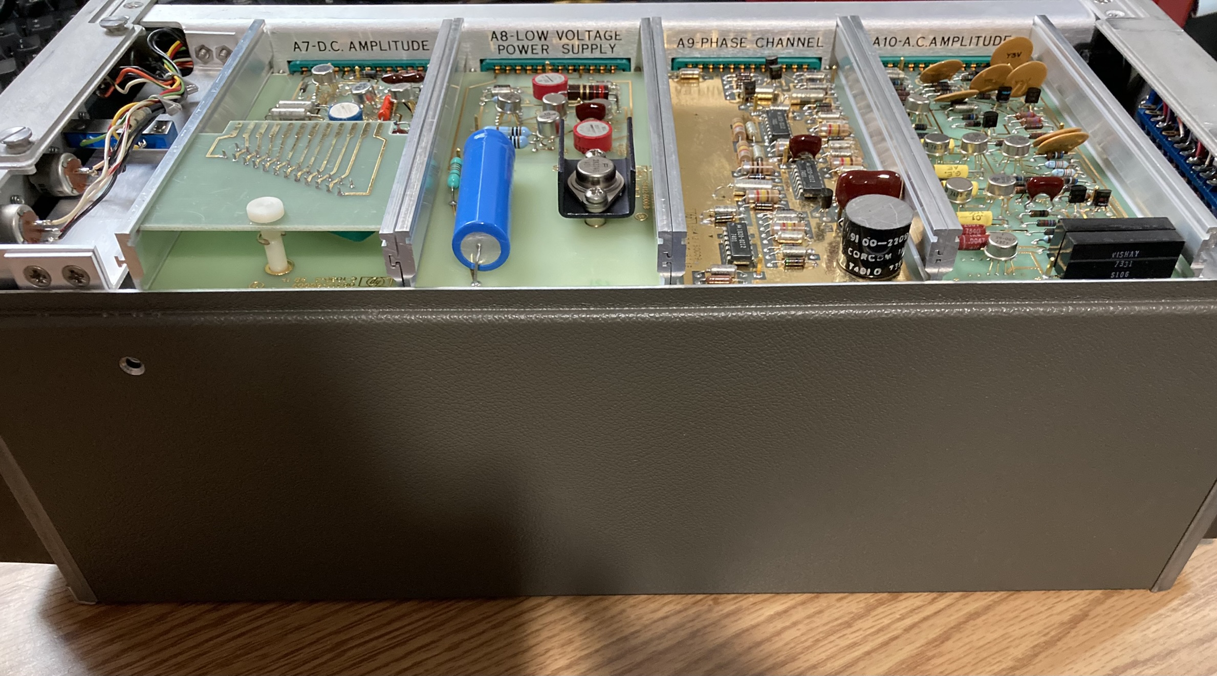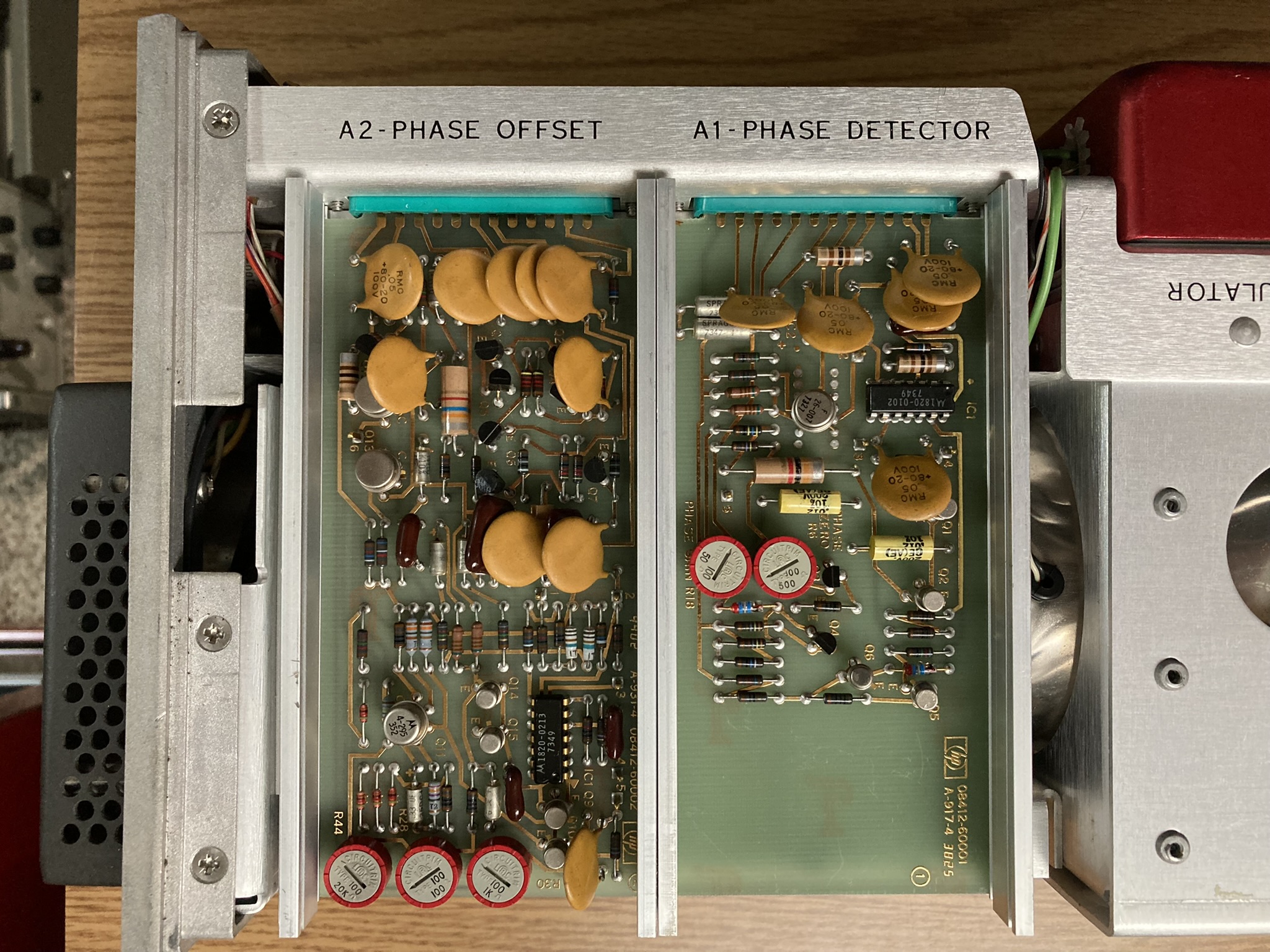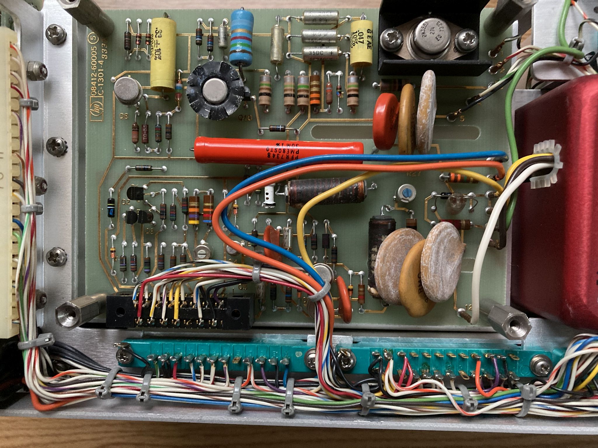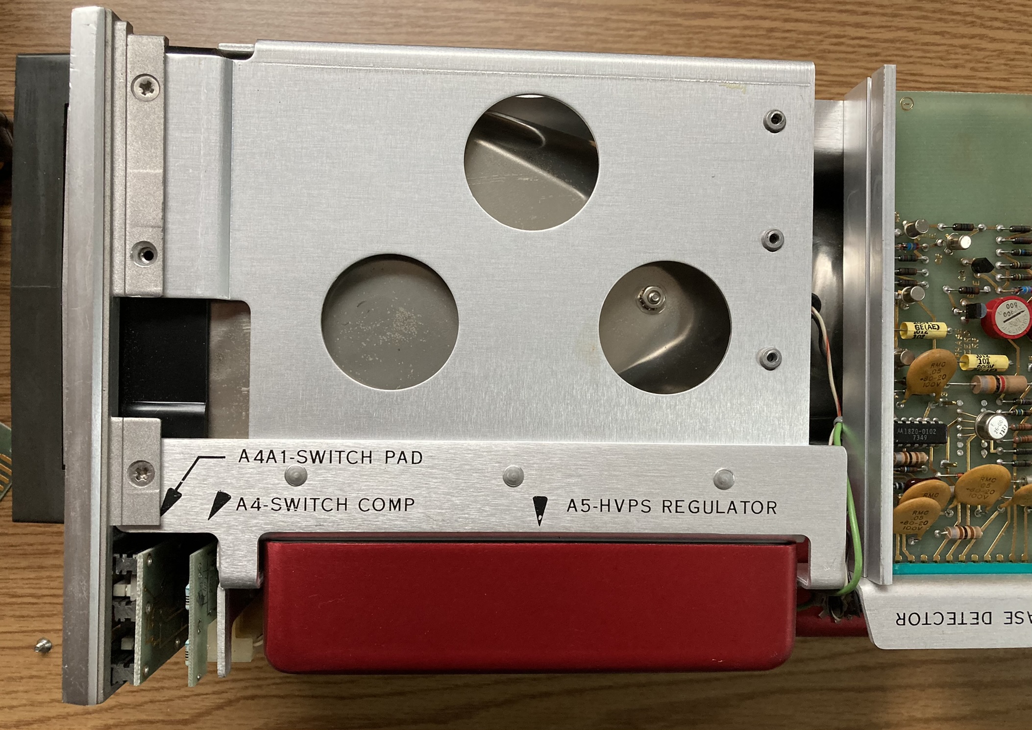 The HP 8410A is an early network analyzer from the late 60s and is one of several components of a system used to measure parameters of RF networks. The 8410A serves as the core processing and measurement unit of the system and includes a swappable CRT-based display module (8412A currently installed). The most interesting part of this particular unit are the two GE Aerospace / Apollo Systems Department asset tags located on the top of the 8412A phase-magnitude display.